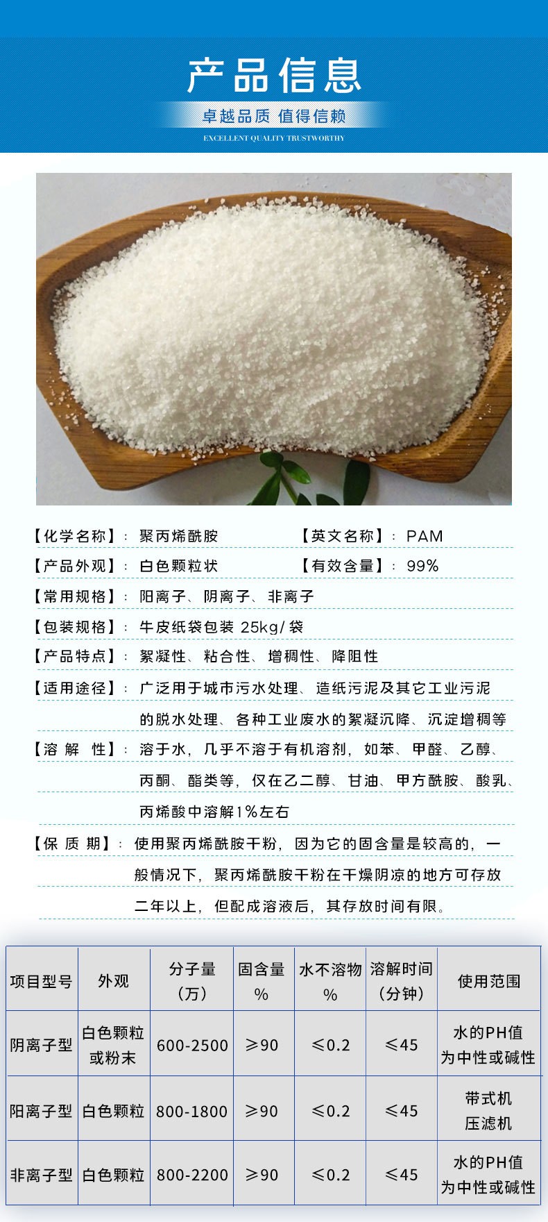 陽(yáng)離子聚丙烯酰胺、陰離子聚丙烯酰胺、非離子聚丙烯酰胺等,不管什么行業(yè)的什么水質(zhì),選對(duì)型號(hào)是很關(guān)鍵的。