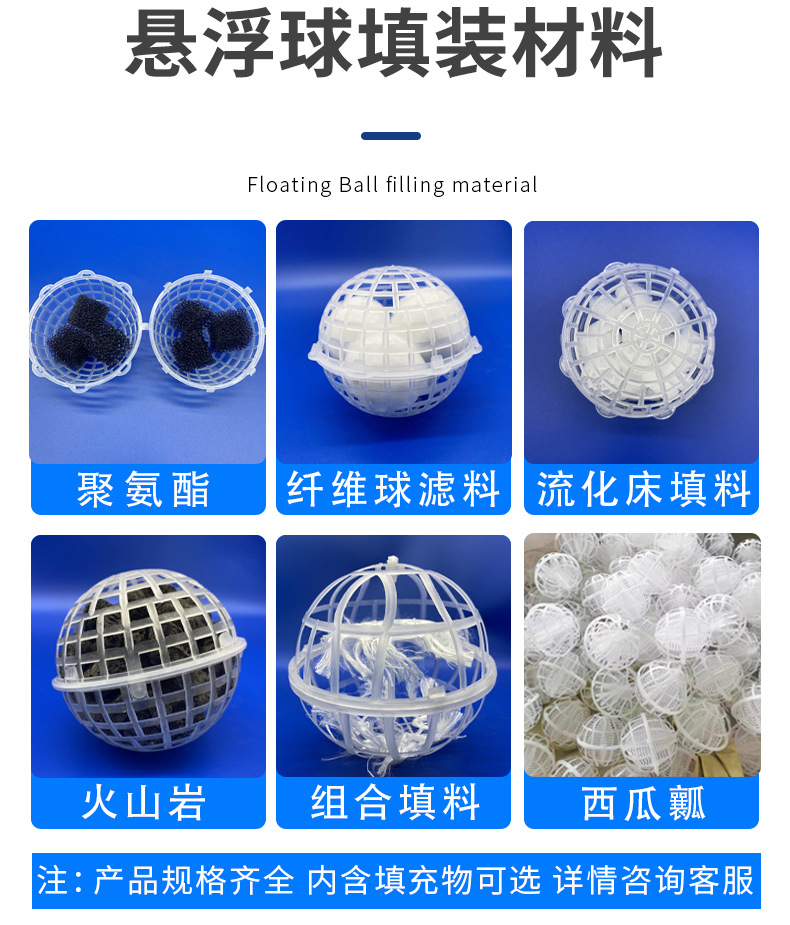 生物懸浮載體填料球 提高生化系統(tǒng)處理效率和生化池的穩(wěn)定性,有效的減少剩余污泥的產(chǎn)生,實(shí)現(xiàn)同步硝化與反硝化的作用。
